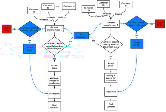 17]. Currently, the RS mechanism is utilized in the garment industry under certain circumstances, such as when there are fluctuations in market expectations or inadequate production capacities for an important order. Moreover, some garment manufacturers apply RS within the organization itself and resources are shared between different teams or departments [