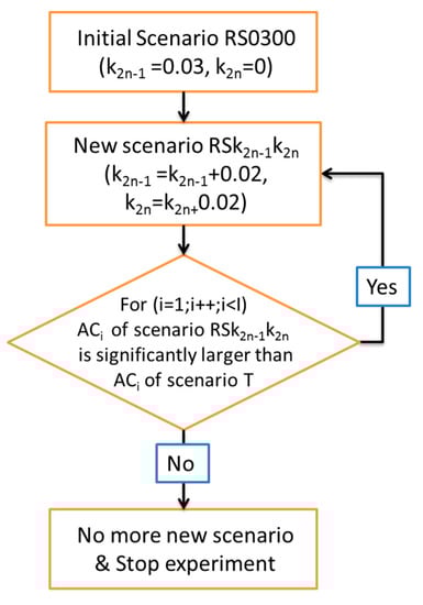 kn was identified, no new scenario would be generated, and the experiment would be stopped. Output data for all generated scenarios were then exported for further analysis. The general flowchart of scenario generation is illustrated in