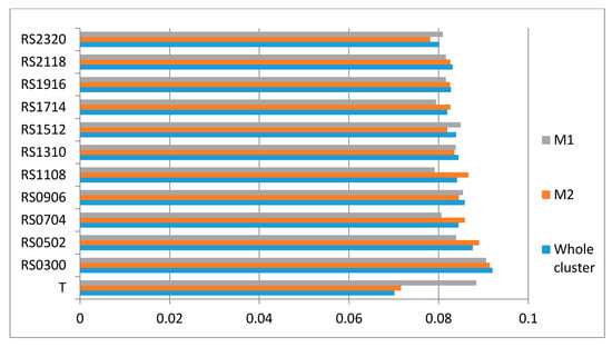Section 3.1.5. For the whole cluster, all RS scenarios obtained a higher OSPI than scenario T, which means that the RS mechanism can bring comprehensive benefits to sustainable production in the garment industry if the increasing failure rate can be maintained within a normal range. We found the same pattern regarding OSPI for M2; therefore, the same conclusion can be applied for manufacturers with relatively more resources in the whole cluster. For M1, only scenario RS0300 had a higher OSPI than scenario T. This means that, for manufacturers with relatively fewer resources compared to the whole industry cluster, the proposed RS mechanism could bring overall sustainable benefits but they should pay attention to quality control. If these manufacturers cannot guarantee high quality production, it is not a good option to apply the RS mechanism to improve sustainable production performance.