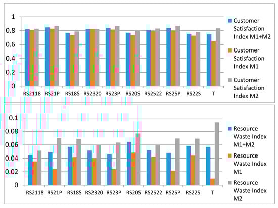 Failed products are another type of waste so we merged production failure rate, which varies depending on product quality and RS mechanism, into the index. Resource waste index (RWIi) was designed as Equation (9). This reflects quality and environmental aspects in sustainable production evaluation.
