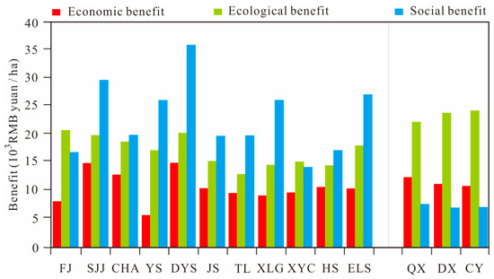 | Social benefit (SB) | Food security benefit (FSB) | Provide agricultural products and improve social wellbeing | |