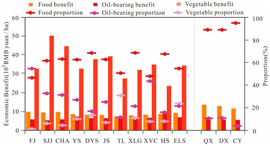 | The comprehensive benefit of cultivated land use (CB) | Economic benefit (EB) | Food benefit (FB) | Grow food, melon, fruit, vegetables, oil-bearing and other foods |