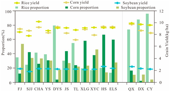 - Xue, J.; Yun, W.J.; Du, G.M.; Zhang, F.R. Difference analysis of land use patterns in modern and traditional agricultural region based on remote sensing. Trans. Chin. Soc. Agric. Eng. 2012, 24, 245–251, (In Chinese with English abstract). [Google Scholar] [CrossRef]