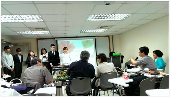 Effective curriculum design is key to successful student learning and outcomes [1,2]. Environmental design involves the fields of architecture, landscape architecture, and urban planning and design, as well as the research pertaining to these fields. The bachelor in environmental design curriculum is practical-based education, which requires the completion of design-based studio experiences every semester, along with a number of complementary courses, general electives, and environmental design electives (http://www.colorado.edu/envd/program-information/curriculum). Due to climate change and extreme weather, developing a transdisciplinary strategy that effectively integrates disciplines, approaches, and knowledge systems is necessary to create greater and more sustainable impacts [3,4]. This study was inspired by the fact that environmental design tends to be a practical discipline which, as Lang commented, “…involves the use of a broad range of skills…not only problem solving skills but also communication skills” [5]. Drawing upon Lang’s recommendation, environmental design curriculum planning in Taiwan can be seen as a mixture of learning by doing and learning with doing [6,7], meaning studio practices and academic theories interact to enrich one another [8,9]. However, the academic modules offered by environmental design departments tend to focus only on the professional knowledge of the environmental design field, and do not include socioeconomic agendas and lack other presentational skills, such as communication skills and digital presentation skills. The heavy burden of compulsory modules limits the ability of students to study these agendas and skills. (For instance, students at the Department of Urban Planning and Development Management, Chinese Culture University had to complete 98 compulsory credits out of 132 graduation credits before 2015. Students of the Department of Architecture, Feng Chia University, had to complete 133 compulsory credits out of 156 graduation credits.)