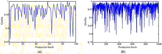 Manufacturing quality of different batches. (a) Small samples with 100 batches, and (b) big samples with 1000 batches.