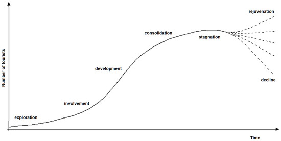 - Butler, R.W. The Concept of a Tourist Area and Cycle of Evolution: Implications for Management of Resources. Can. Geogr. 1980, 24, 5–12. [Google Scholar] [CrossRef]