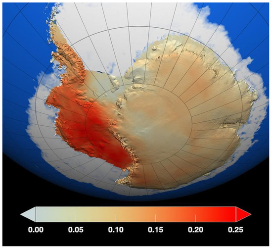 Antarctic surface temperature change tendencies, according to measurements taken in the years 1957–2006 (Source: [54]).