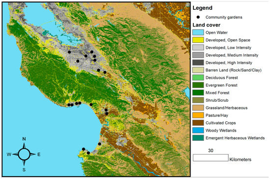 The neighborhoods around the gardens varied in terms of biophysical features and sociodemographics due to different histories of urban development and demographic change. Santa Cruz County is a leading producer of strawberries and leafy greens. Yet, many of the workers that pick these fruits and vegetables live in food insecure neighborhoods [40]. Southern Monterey County is known for its maritime industry, US Pacific Naval forces, and tourism, which have brought cultural diversity and economic affluence, as well as socioeconomic hardship, to the region [41]. Santa Clara County has transformed over the past half century from the “Valley of Heart’s Delight”—an orchard landscape tended to by Asian and European immigrants—to “Silicon Valley”—an impervious landscape of growing socioeconomic disparity [42]. Across the region, community gardening supports thousands of urban gardeners, many of whom use gardens as an opportunity to grow organic food, be in the outdoors, and build community [39]. Here, we focused on garden use and the well-being benefits derived, as self-reported by a portion of these gardeners in a subset of the region’s gardens.