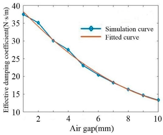 The relationship between the effective damping coefficient and air gap is fitted through a quadratic function: