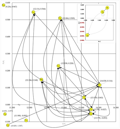 The normalized total-influence matrix can be transposed as the unweighted supermatrix in the format of Equations (A6) and (A7) by using Equations (A10)–(A13) in Appendix C. Thus, the total influences from one criterion to others can be normalized by using Equations (A12) and (A13) and then filled into the unweighted supermatrix. The weighted supermatrix can be derived accordingly. Thereafter, the unlimited supermatrix can be derived by raising the power of the weighted supermatrix to a sufficiently large one , as in Equation (A15). The process can be terminated when the supermatrix converges and becomes a long-term stable supermatrix. The weights versus each aspect and criterion can be derived accordingly (see Table 9 and Table 10).