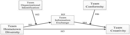 The relationship between demographic diversity and team performance has presented mixed results []. Consequently, researchers have begun to explore the functions of mediators between this relationship []. Team information exchange and processing have been assumed to be a key link from team diversity to team creativity. People from the same hometown are more likely to trust each other and be willing to exchange their ideas, which enables diverse information and knowledge to supplement each other to generate novel ideas. Thus, we hypothesize that:
