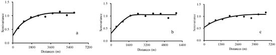 where x(kj) is sample z(xkj)’s location and tk is the land use pattern associated with xkj. With this method, residual r(xkj) is treated as a new regionalized variable to execute the OK interpolation. The variogram and the prediction equation of the SOC residuals are shown as Equations (7) and (8). The final predicted SOC value of the unknown point is the sum of the predicted residual value (r*(xkj)) and the SOC mean value (μ(tk)) associated with the land use pattern to which it belongs (Equation (9)):