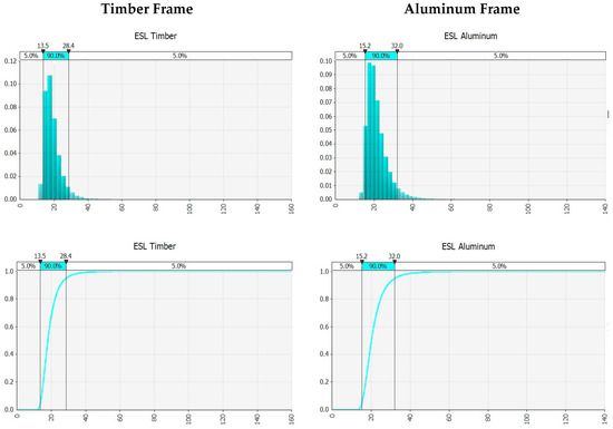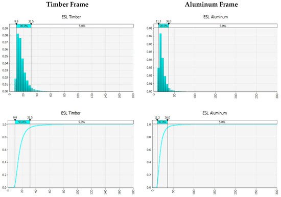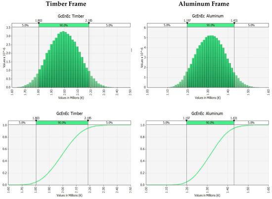 Figure 6 depicts the outputs obtained through the MCM simulation, for timber frame and aluminum frame, for briefness only in relation to the low scenario.