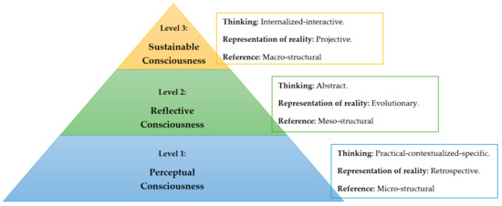 In short, the scientific literature seems to agree on two ideas: (1) conscience is linked to cognitive processes, and (2) there are different levels of conscience linked to certain types of thinking [61]. These theories are a reference to study sustainable consciousness from an empirical–educational approach, as well as to assess the role of ICT in training.