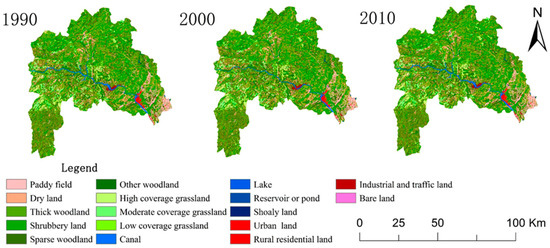 Spatial distribution maps of landscape in 1990, 2000, 2010.