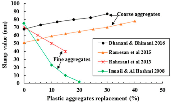 - Workability increases as the content of coarse recycled waste plastic aggregate increases, up to 50%. Beyond this level, workability decreases. The workability of concrete could increase or decrease as the amount of fine recycled waste plastic aggregate increases depending on the particle shape, size, roughness, water‒cement ratio and amount of cement paste.