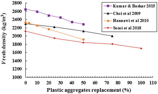 - Increase in the content of plastic aggregate reduces the density of concrete—the reduction is greater with bigger and flakier particles of plastic aggregate.