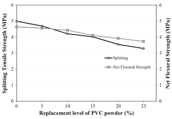 - A decrease int he flexural/splitting tensile strength of plastic aggregate concrete is reported. At moderate levels of replacement of natural aggregate with plastic aggregate (less than 20% waste plastic fiber), an increase in the flexural/tensile properties can be achieved.