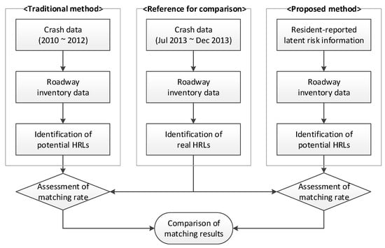 - Arrangement of two datasets: Two datasets were used for the identification of HRLs: one composed of crash data from three years (2010 to 2012), and another composed of resident-reported latent roadway risk information from 23–29 June 2013.