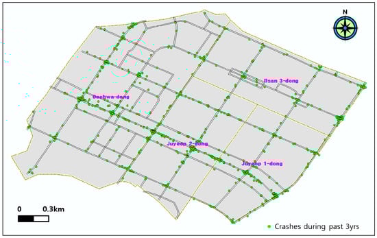 - Chung, Y.; Eom, K. A Proactive Traffic Accident Countermeasure based on ICT and Its Assessment; The Korea Transport Institute: Goyang, Korea, 2014; p. 17. (In Korean) [Google Scholar]