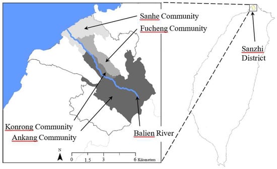 This case focuses on four rural communities along the Balien River basin of New Taipei City. We conduct fieldwork in the research area as well as interviews with governmental agencies, community leaders, and residents to explore whether river conservation actions based on community self-governance have stimulated the social production of rural regimes. We also analyze whether the application of SNS media has strengthened the governing capacity of rural collaborative networks. As shown in Figure 3, the research area is in Sanzhi District in the northern New Taipei City, Taiwan. New Taipei City is currently a special municipality; its predecessor before 2010 was Taipei County. Unlike in Taipei City, the capital of Taiwan, administrative resources at the county level were deficient. Moreover, New Taipei City has an extremely large jurisdiction. Sanzhi District is in a peripheral area with sharp urban-rural disparity. According to official information obtained from the Sanzhi District Office, agriculture is still the paramount local economic base. Although many factories were built in the 1980s, the manufacturing sector has declined owing to industrial outflows since the 2000s. Most of the non-agricultural population includes commuters working in Taipei City. Therefore, the research area is geographically characterized as ‘rural’ although it is jurisdictionally labelled as a part of an urban area.