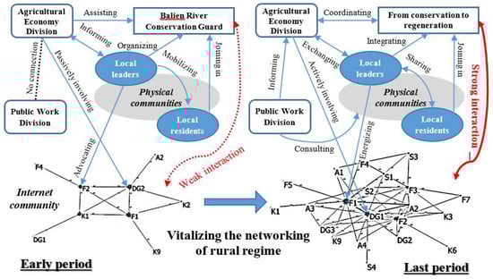 Finally, a consensus has been achieved between the public and private sectors. The cognitive gap and social conflicts have been replaced with positive communications forming collaborative networks in which inter-community cooperation, knowledge learning, and opinion feedbacks contribute to effective governing capacity and create new socio-economic events with rurality. With improved performance and credibility, community solidarity toward river conservation actions led by the BRCG strengthened, thus contributing toward a vital coalition for rural regeneration.
