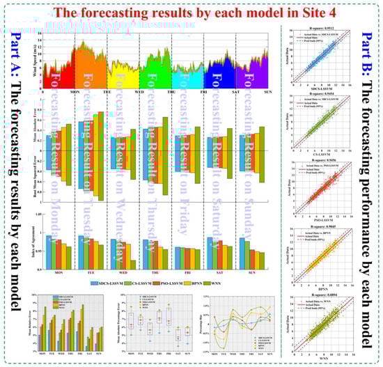 In particular, we use two-order forecast effectiveness in this paper. Moreover, two-order forecasting effectiveness of the proposed hybrid model is maximum from the following simulation results. From Table 10 we can clearly see that second-order forecasting effectiveness offered by the proposed hybrid model outperforms the other four models for wind speed forecasting at different sites. For example, for Site 1, second-order values of WPT-SDCS-LSSVM from Monday to Sunday are 0.93728, 0.99108, 0.98144, 0.98225, 0.97296, 0.98165, and 0.99103, respectively, which are larger than the other model.