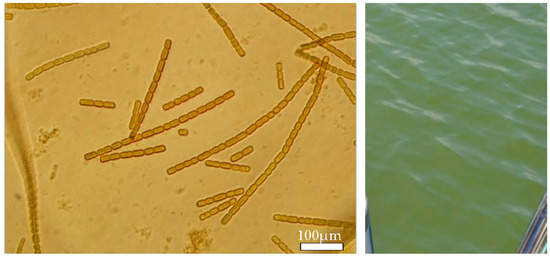 (left) The micro-morphology of Pseudanabaena sp. (right) The bloom in the cascading reservoirs.