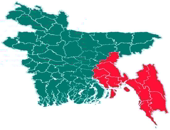 Area in red is the Chittagong division.