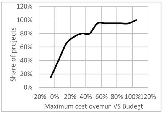 China has been in a period of rapid traffic construction development since the 1980s and a great number of bridges with a long span, advanced technology adoption and high investment have appeared. Through probabilistic analysis, it can be known that under an optimism bias, 60% of the projects will exceed 10% of the budget at most, while 80% of the projects will exceed 35% of the budget at most and the cost overrun probability of most projects is lower than 60% (shown in Figure 1).