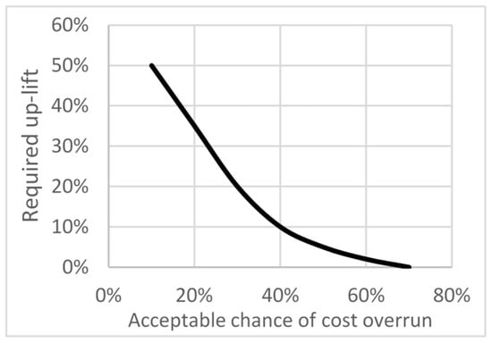 When a project is still in the preliminary planning phase, the decision-makers should take optimism bias into account when assessing the budget. As shown in Figure 2, when the acceptable cost overrun risk of a bridge project reaches 10%, the decision-makers should select a budget improvement rate of 50%. In other words, if the initial budget of this bridge project is 10 million yuan, the final budget should be increased by 50%, reaching 15 million yuan. When the acceptable cost overrun risk of the bridge project reaches 60%, which means that the project cost overrun risk must be within 60%, the decision-makers should select a budget improvement rate of 2%. In other words, if the initial budget of this bridge project is 10 million yuan, the final budget should be increased by 2%, reaching 10.2 million yuan.