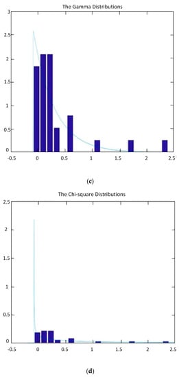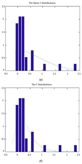 Different Types of Distributions of Cost Overrun. (a)The Logarithmic Distributions; (b) The Weibull Distributions; (c) The Gamma Distributions; (d) The Chi-square Distributions; (e) The Skew-T Distributions; (f) The F Distributions.