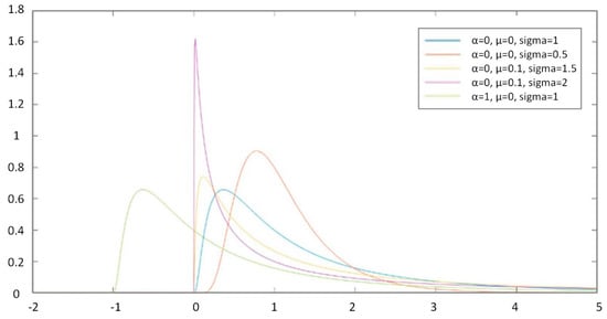 Then, we provide a probability density function of the log-normal distribution and a probability density distribution diagram with all parameters.