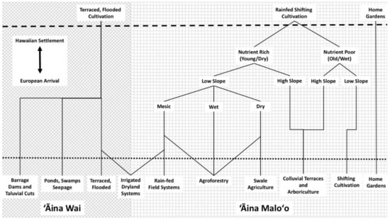- Lincoln, N.K.; Vitousek, P.M. Indigenous Polynesian Agriculture in Hawai‘I. Oxf. Res. Encycl. Environ. Sci. 2017. [Google Scholar] [CrossRef]