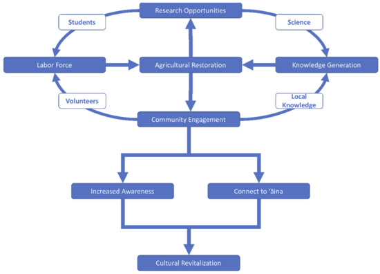 Of particular interest to both research and restoration have been Hawaiian agricultural systems. Before European contact, Native Hawaiian agriculture was highly adapted to place and expressed a myriad of forms [7]. The development of unique resource management practices evolved to local environments maximized efficient productivity [8,9,10,11,12,13,14]. This led to highly specific, place-adapted indigenous knowledge that powered the political evolution of the ancient Hawaiian state. In the past few decades there has been an increasing recognition of the high value of this knowledge in contemporary resource management and land stewardship, and growing efforts to preserve and revitalize such knowledge. Restoration of these place-adapted systems has proven challenging due to significant loss of traditional ecological knowledge.