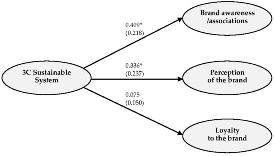 - Hypothesis 3: the 3C sustainable system positively affects brand loyalty—there are no grounds to reject the null hypothesis stating that there is no relationship, therefore Hypothesis 3 has not been confirmed.