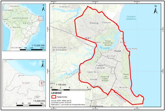 - IBGE. Estimates of the Resident Population in the Municipalities and for the Units of the Brazilian Federation. Available online: https://cidades.ibge.gov.br/brasil/rn/natal/pesquisa/38/46996 (accessed on 1 July 2017).