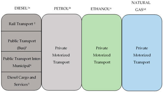 - Public data obtained on request: natural gas sales data from Natal’s gas distributor, Potigás [49], Brazilian Company of Urban Trains (CBTU) railway diesel consumption data [50], traffic-counting data obtained from the time Natal’s PlanMob was developed, and data related to intermunicipal road transport under the Rio Grande do Norte Road and Roadwork Department (DER/RN) responsibility [51].