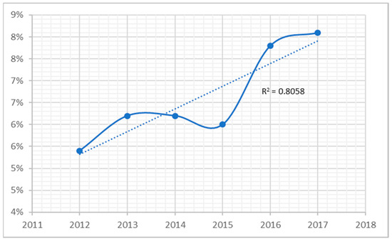 Concerning the transport sector, this growth was reflected in an increase in motorization rates, especially those of the private vehicle fleet, causing congestions, pollution, and traffic accidents. This motorization rate was further aggravated by the poor quality of the local public transport, the dispersed occupation pattern of suburban regions [17,18], public incentives for the automotive industry, and subsidies for fossil fuels [19,20,21,22].