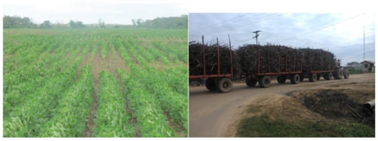 Left side: Soybean field near Pailón. Right side: Sugar cane transport in San Pedro, both Santa Cruz Department, Bolivia 2016.