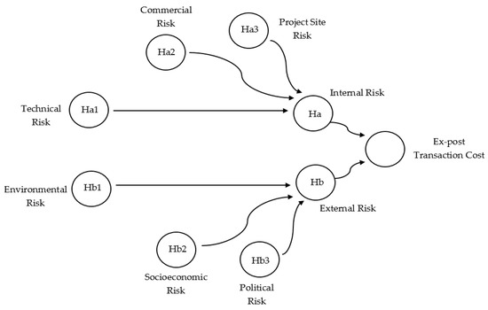 Risk mitigation strategies in project planning determine project performance. The project management literature has classified various risks that influence project performance [1]. However, this study explores the cost risk of construction projects. The cost risk means the risk of transaction cost (TC) escalation, which enhances the total project cost. Drawing on transaction cost economics (TCE) theory, this study posits that the owner during project operation incurs not only production cost, but also TC. It is due to the owner’s limited rationality to make flawless contracts; consequently, various risks emerge, which require periodic cost adjustments. TCE theory also discusses the opportunistic behavior of contractors who work for their interest cause to increase the risk of TC escalation. Moreover, the risk of TC is also escalated due to uncertainties in the project environment [2]. However, studies found that risks of TC originating from the owner are due to design errors and omissions [3], work acceleration [4], unrealistic project estimation, and change of project schedule [5], etc. Resultantly, the contractor haggles over the claims. Likewise, TC escalation could be the result of risks associated with various external sources on which both trading partners have little or no control over, such as political instability, hyperinflation, and other unforeseen conditions [5,6]. Thus, risk assessment of TC escalation is under the attention of such anomalies, which are continuously a challenge for practitioners to keep the project cost constant till project completion. The intuition behind the pervasive phenomenon of TC escalation, especially in developing countries, is due to a knowledge deficiency on risk, weak institutional governance, and environmental uncertainty [7]. However, adequate consideration of these risks at the outset of contracting increase the probability of reducing TC escalation problems during project operations. Generally, the production cost is a public expenditure. On the contrary, TC is a hidden cost [8], and the identification of associated risk is practically challenging and largely ignored in previous studies. In the literature, TCs are classified into two categories: Ex-ante TC and ex-post TC. In both phases, it is the risk which causes escalation of TC. While mitigating risk, it is suggested that the elimination of all risks would be unrealistic, even claiming to consider all of them would be a failure. The pragmatic approach is to identify the critical risk factors and make a strategy for control [9]. In similar lines, this study focuses on the essential risks in the ex-post phase of construction projects.
