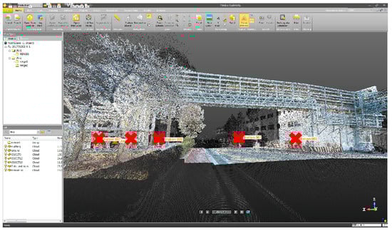 The 3D laser scanner used in this case study was the TX8 model supplied by Trimble, and its specifications are shown in Table 1. TX8 is a high-performance 3D laser scanner used to acquire precision data. The representative characteristics of this model are that it can perform ultra-high-speed scanning using Trimble’s lightning technology and acquire data in a stable manner regardless of the reflectivity of the target object. The speed of basic point cloud acquisition was 1,000,000 points/s, indicating that the model was suitable to scan large-scale facilities.