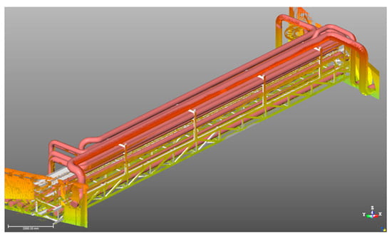 Furthermore, it was possible to perform structural safety diagnosis for a specific area using laser scanning and BIM data. Figure 11 shows a visual representation of the deflection analysis of the truss supporting the pipes passing through the pipe rack.