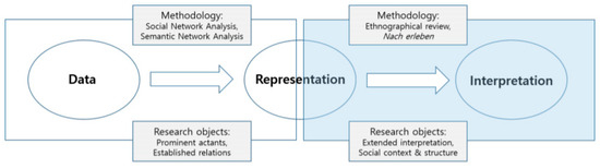 Recently, semantic network analysis has been widely accepted as a helpful method exploring word associations in the texts. Semantic network analysis is a form of content analysis that identified the network of associations between concepts expressed in the text [42,43]. The core of semantic network analysis is “collecting a small set of texts from ‘critical junctures’ in the life of ‘a social movement for study’” [44] (p. 229). Doerfel and Barnett conducted a semantic network analysis to probe the structure of the International Communication Association (ICA) [45]. They extracted the words from the titles of the papers presented to ICA. Semantic network analysis identifies a new cluster of concepts, so it enables us to explore the meaningful ideas from the texts [43]. Analysing a meaningful cluster of concepts corresponds well with framing analysis. Semantic network analysis addresses the issue saliences mentioned by Entman’s study on frames [46].