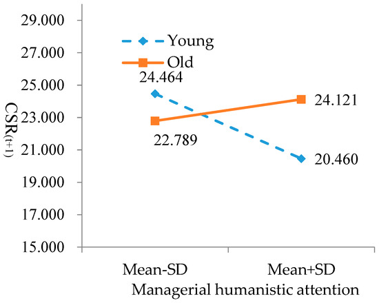 The positive relationship between managerial humanistic attention and CSR is moderated by firm age. Specifically, this relationship becomes stronger when a firm grows older.