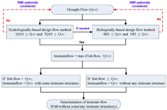 Flow chart to form and determine the aquatic habitats: is drought flow; 1Q10 is the lowest 1-day average flow in a 10-year return period; 7Q10 is the lowest 7-day average flow in a 10-year return period; 4B3 is a biologically based 4-day average flow that occurs once every three years; 1B3 is a biologically 1-h average flow that occurs once every three years and used to protect aquatic life from acute effects.