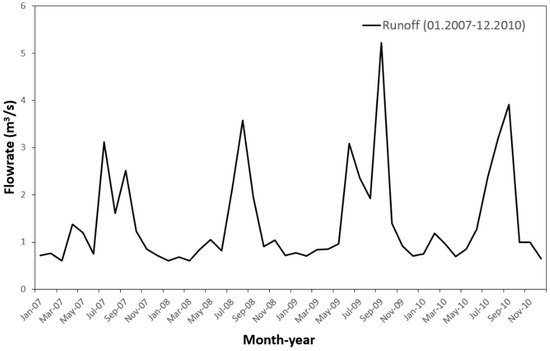 Simulated runoff using SWMM from January 2007 to December 2010.