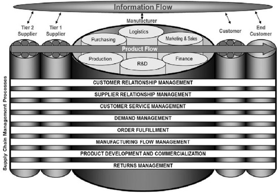 13]. Manufacturing flow management is an SCM process that includes all the activities needed to obtain the flexibility, implementation, and management of the supply chain to move products into and out of the factory. Manufacturing flow management assesses the current and desired flexibility of strategic resources, such as manufacturing plants, suppliers, distribution channels, IT, and human resources [