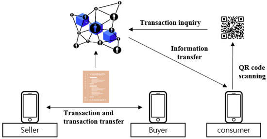 30]. The stability of the nodes can be guaranteed, and the sellers, buyers, and consumers can access the implemented system on the Ethereum network via applications. The applications save or share data in the Ethereum network to process them and show the relevant information when the consumers, wholesalers, or retailers search for data. The producers, wholesalers, or retailers can be the sellers in such cases. The buyer refers to the wholesale and retail dealers, whereas the consumer refers to the final product purchaser and the wholesale and retail dealers who want to search for product information.