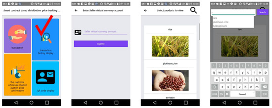 The implemented application was created on Android and consists of several functions: Trading, distribution history inquiry, showing My QR Code, and real-time wholesale market auction price confirmation tab.